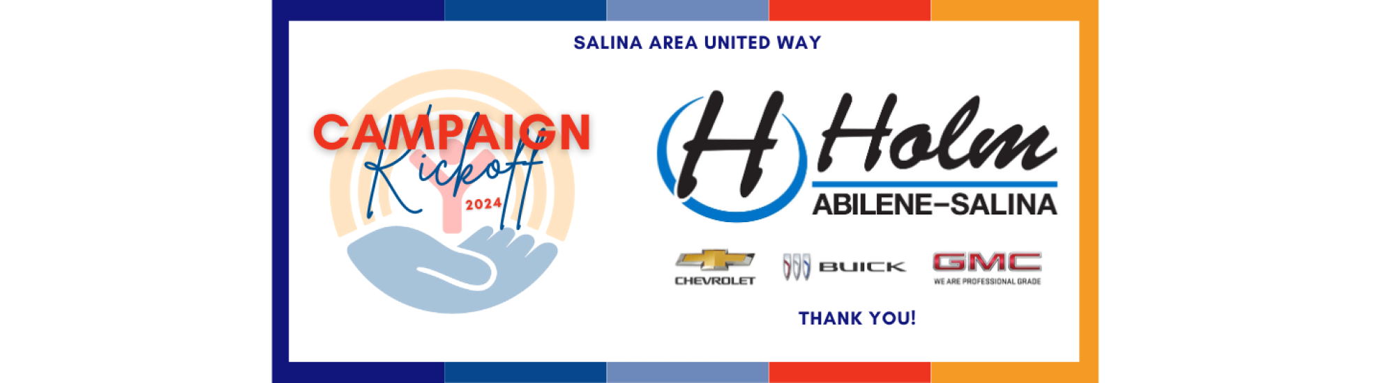 Salina, KS – The Salina Area United Way is thrilled to announce that up to $10,000 in matching funds will be available during the 2024-2025 Campaign Kickoff Event. This generous contribution, provided by Holm Automotive – Salina & Abilene, will amplify donations made thru Tuesday night, expanding the organization's ability to support the community, including 13 Funded Partners and 7 Early Childcare Initiative Partners.