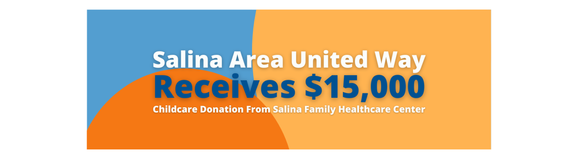 Salina, KS – Salina Area United Way is excited to announce that the organization has received a $15,000 Early Childcare Initiative Fund donation from Salina Family Healthcare Center. Their organization’s donation will help create huge ongoing strides in the Saline County Childcare Initiative by sponsoring three local childcare teachers to ensure that they earn a living wage, helping to keep our centers fully staffed, which will in return open more childcare slots throughout the community.